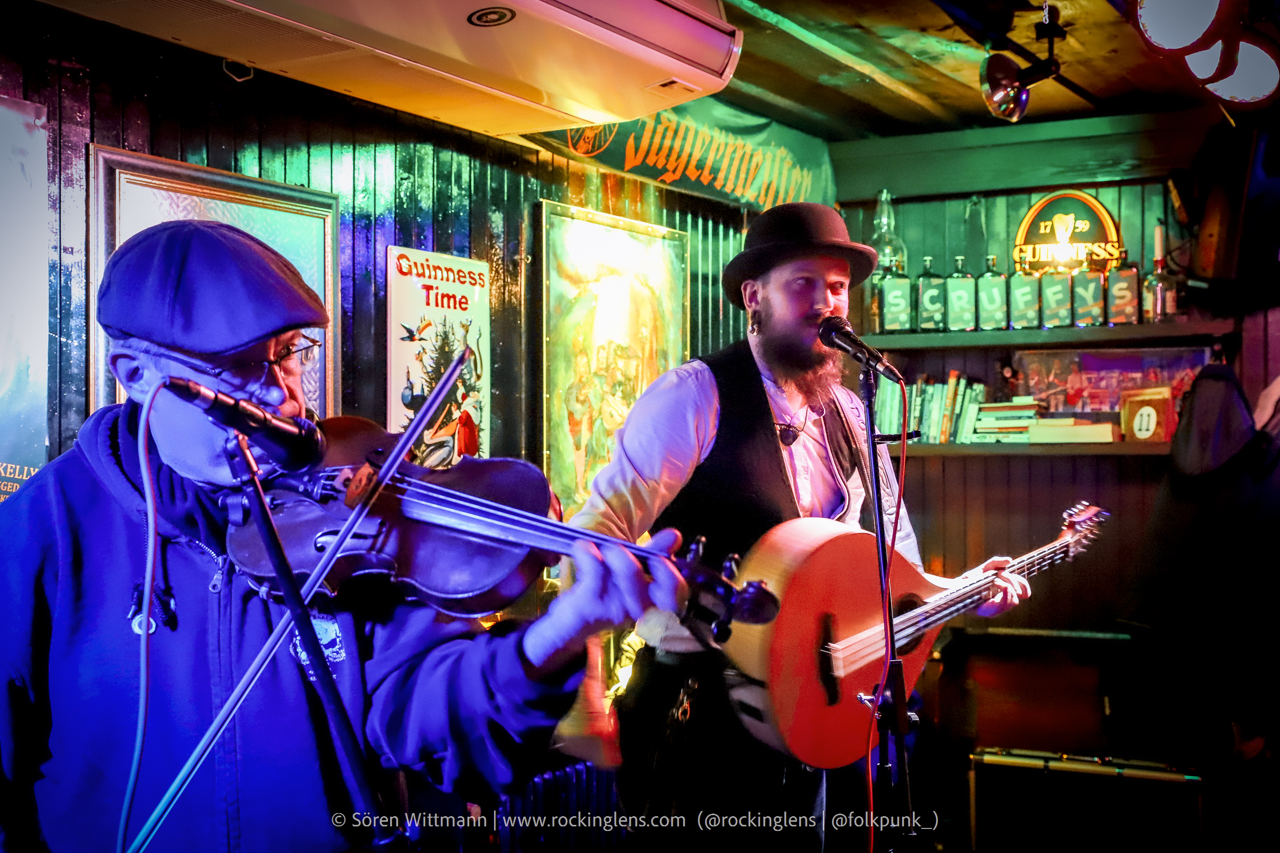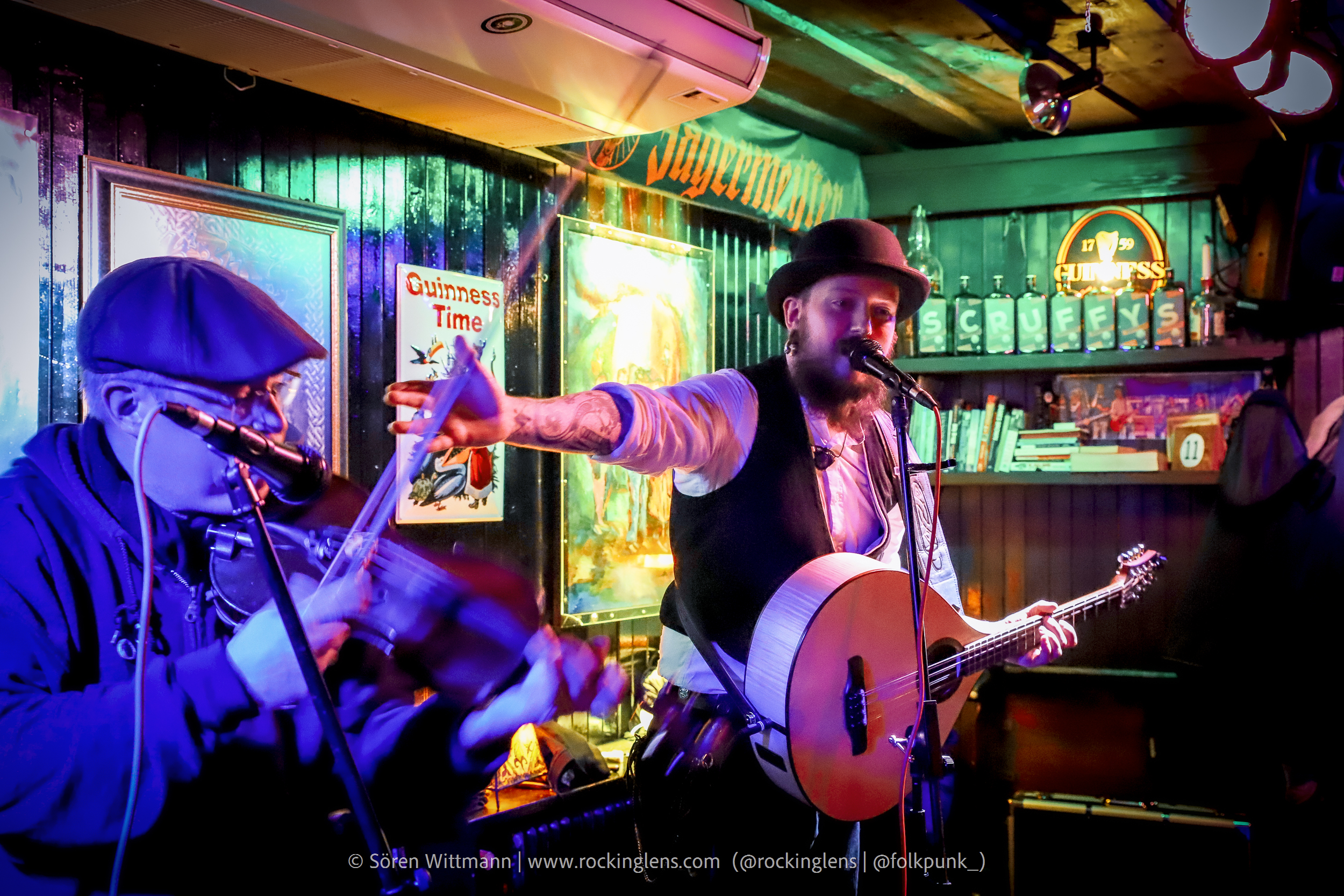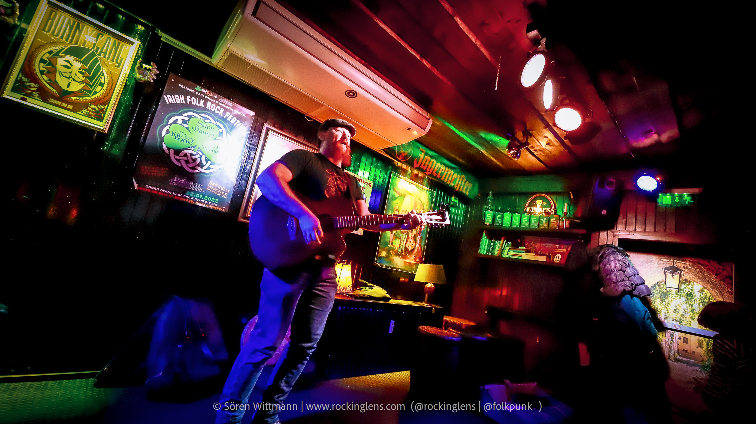Eigentlich sollte das Irish Folk Rock Festival an diesen Tag etwas größer ausfallen, aber aus bekannten Gründen müssen (in Deutschland) solche Veranstaltungen abgesagt werden. Um dennoch Live-Musik stattfinden lassen zu können wurde diese Veranstaltung (mit reduziertem LineUp) einfach in den Scruffys Irish Pub verlegt, mit dem kleinen Vorsatz „Mini“. Wir waren rechtzeitig da, 2G+ Nachweis vorgezeigt, ab zum Tisch direkt vor der Bühne, Kaltgetränke geordert und kurz warten.