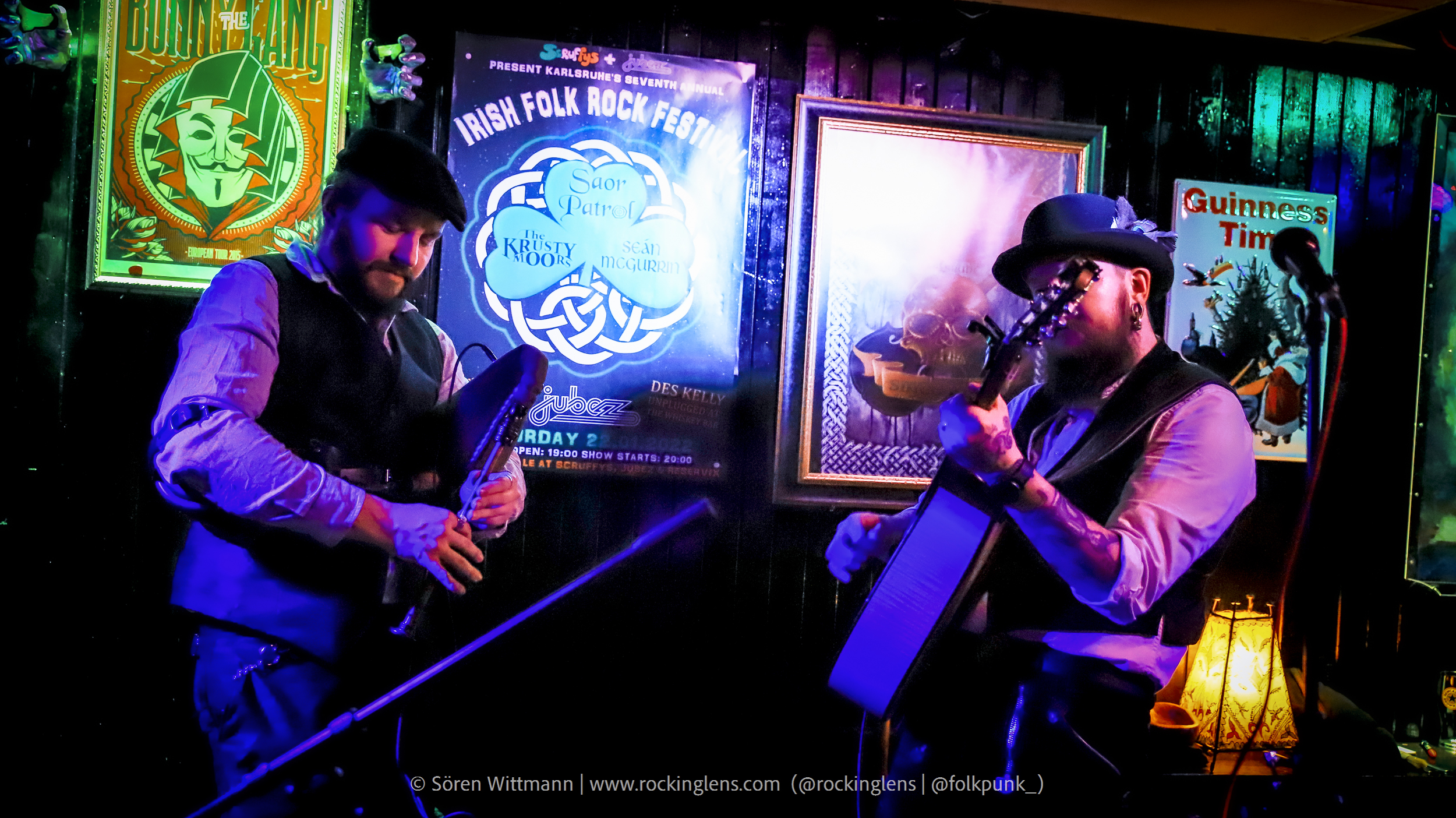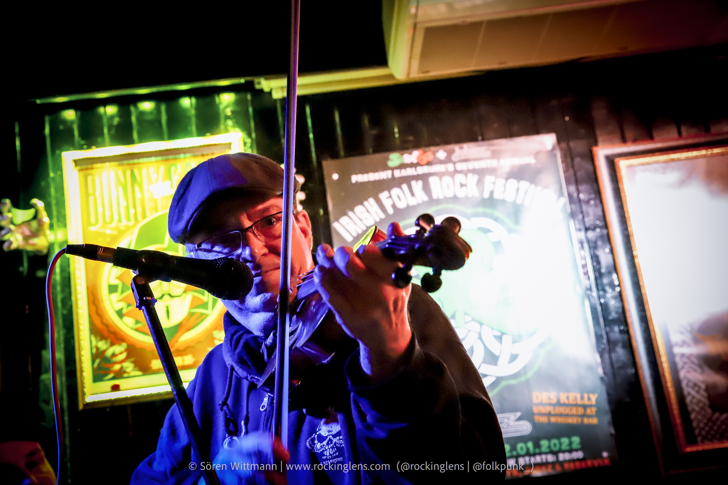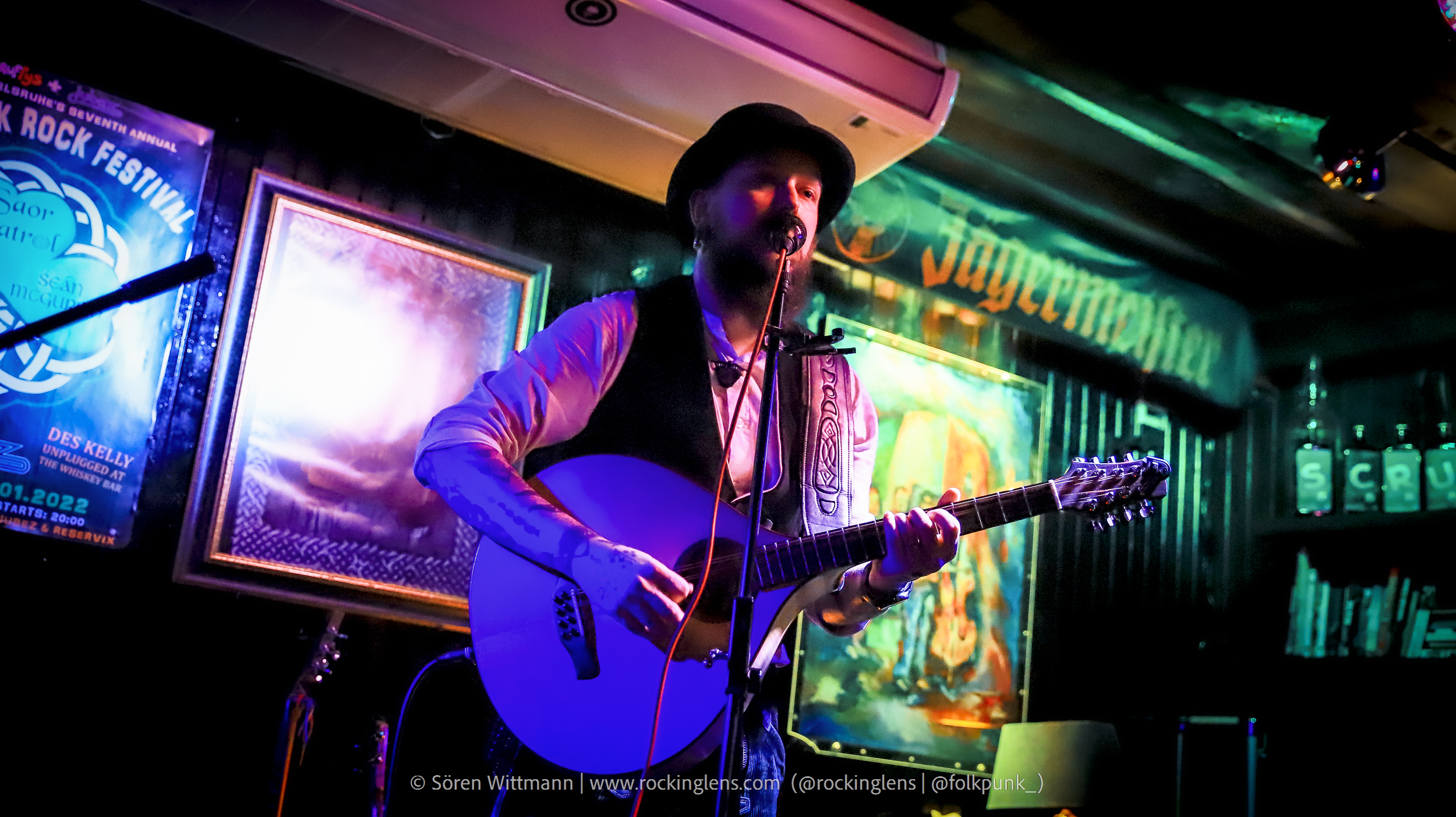 Eigentlich sollte das Irish Folk Rock Festival an diesen Tag etwas größer ausfallen, aber aus bekannten Gründen müssen (in Deutschland) solche Veranstaltungen abgesagt werden. Um dennoch Live-Musik stattfinden lassen zu können wurde diese Veranstaltung (mit reduziertem LineUp) einfach in den Scruffys Irish Pub verlegt, mit dem kleinen Vorsatz „Mini“. Wir waren rechtzeitig da, 2G+ Nachweis vorgezeigt, ab zum Tisch direkt vor der Bühne, Kaltgetränke geordert und kurz warten.